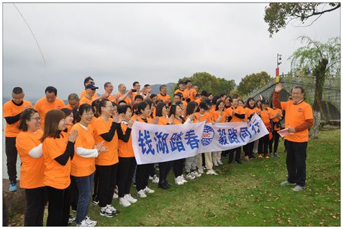 來到東錢湖,柳枝搖曳、鮮花盛開、碧波蕩漾,令人心曠神怡。陳志勇董事長作動員發(fā)言,“現(xiàn)在,我們出發(fā)!”一聲響亮的號令,徒步活動正式開始。從小普陀景區(qū)到圓融廣場經(jīng)黃家岙到下水濕地公園,全程大約6公里,一支身著橙色衣服的隊伍行走于山水之間,充滿活力與朝氣,形成一道流動的風(fēng)景線。